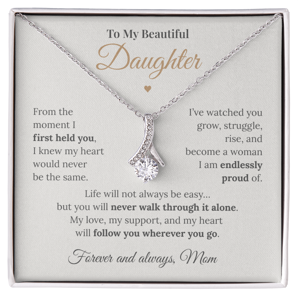 To My Beautiful Daughter – Alluring Beauty Necklace from Mom | Meaningful Message Card Gift